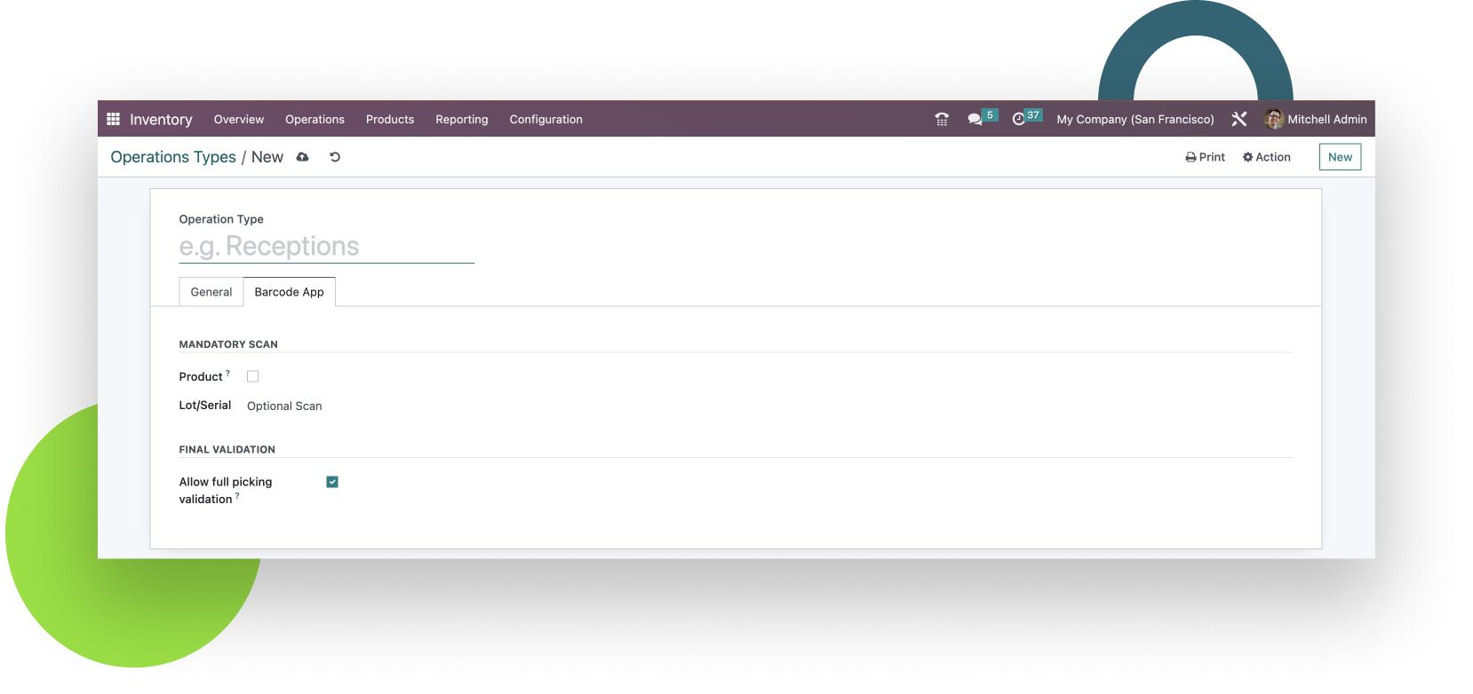 The Barcode app now integrates with the Inventory app giving you quick access to... Getting started with barcode scanning in Odoo has never been easier. Simplify and improve your warehouse processes and reduce operations time and errors with Odoo’s barcode plugins.