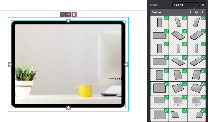 Use the new category of image shapes called 'Devices' to make images look like they are in a device (phone, tablet, computer).